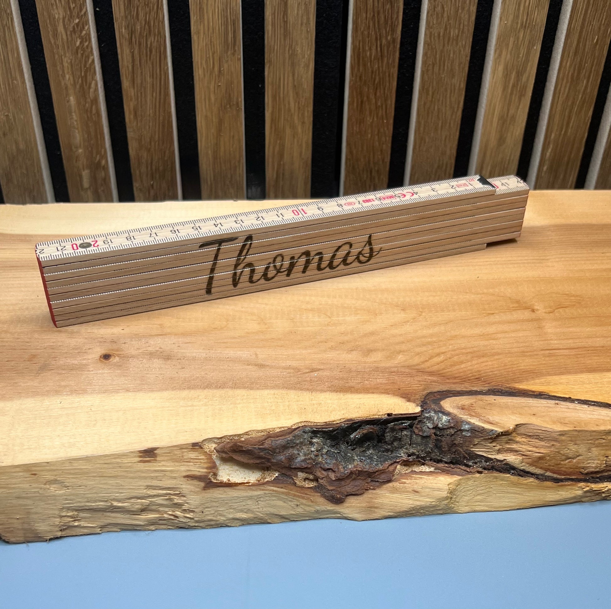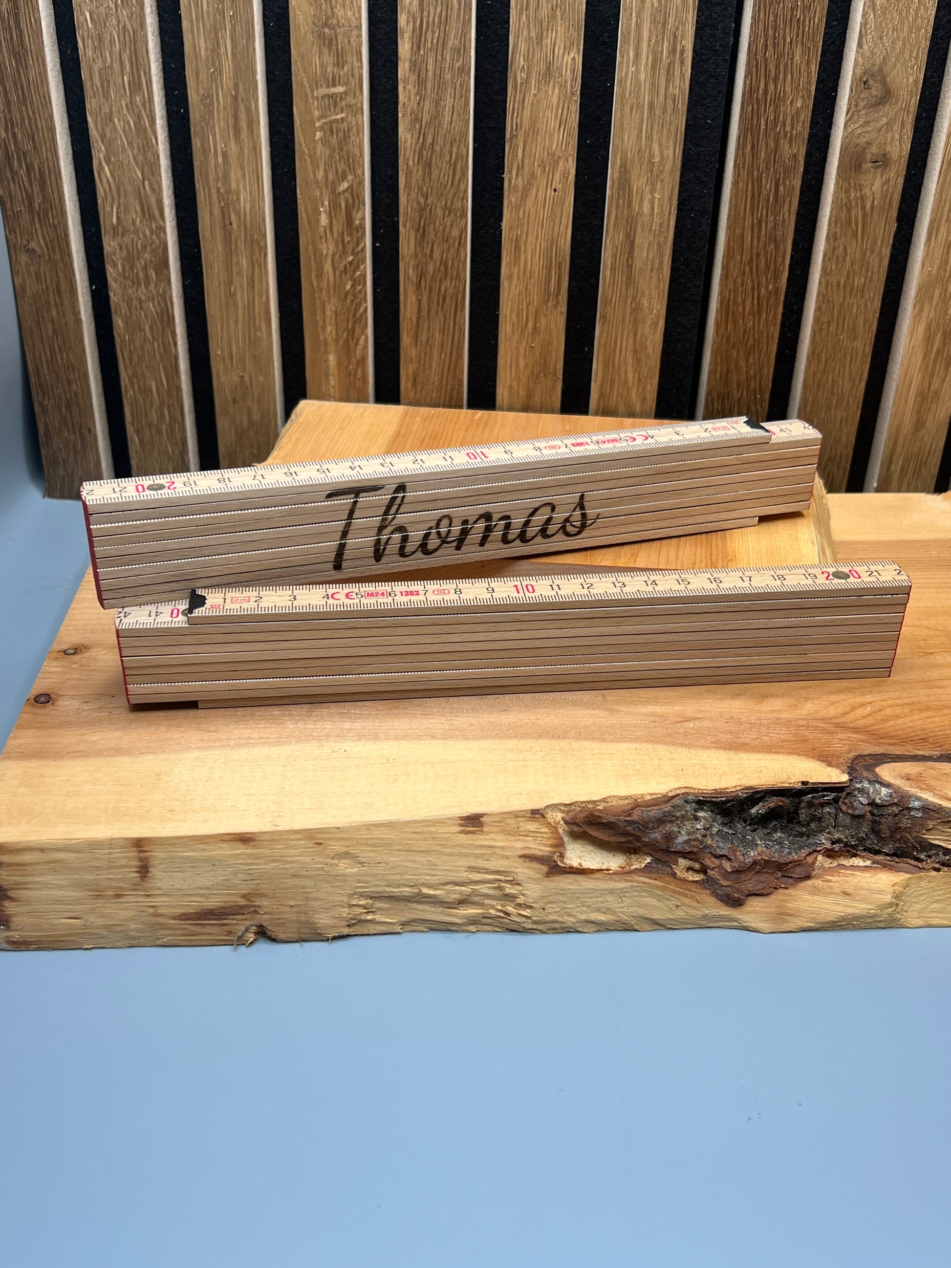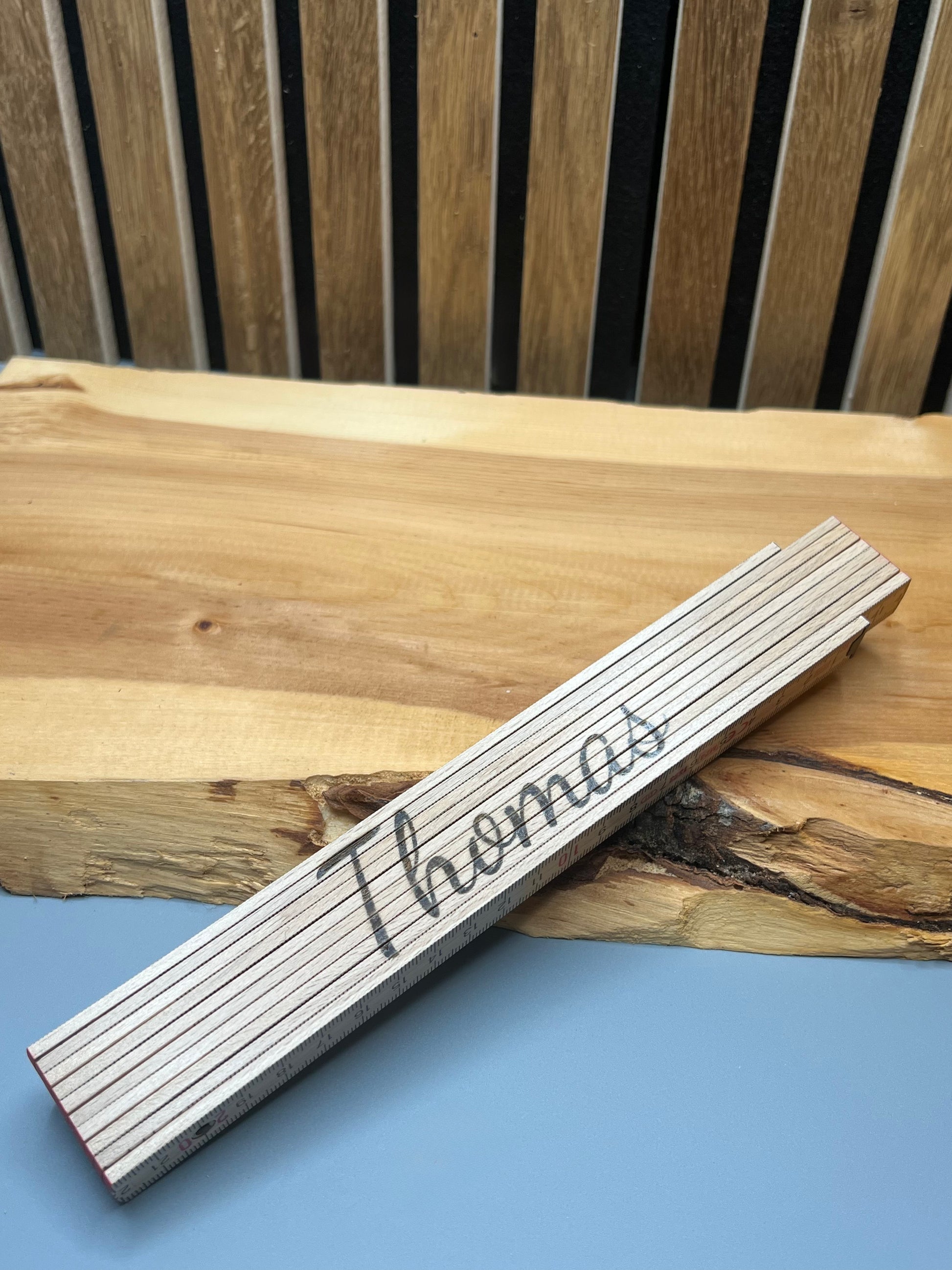 Unser hochwertiger Meterstab mit individueller Gravur ist nicht nur ein nützliches Werkzeug, sondern auch ein echter Hingucker – ideal für Handwerker, Heimwerker, Bauherren oder einfach kreative Bastler.