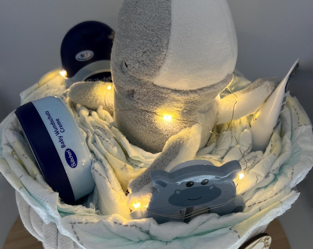 Windeltorte Wal , Geschenk zur Geburt , Babyshower,